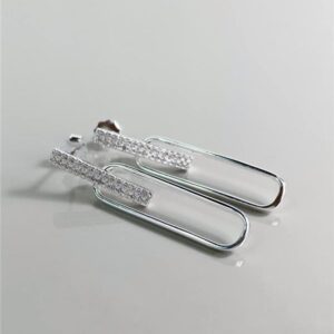 BRINCO BASE PALITO COM PINGENTE RETANGULAR VAZADO E CRAVEJADO